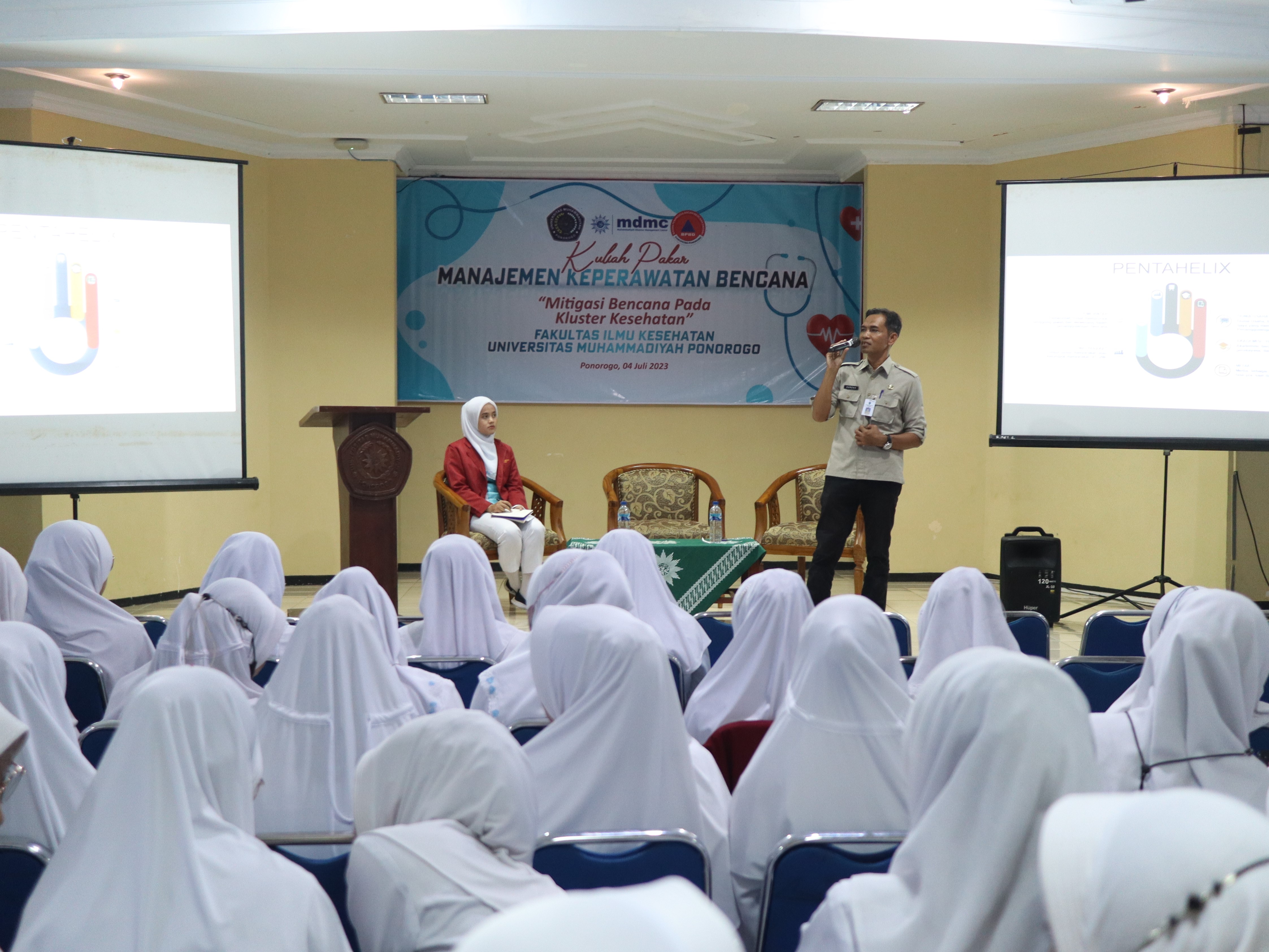 Kegiatan yang diikuti seluruh mahasiswa D3 Keperawatan, S1 Keperawatan dan profesi ners ini mendatangkan pembicaraan dari Kepala Badan Penanggulangan Bencana Daerah (BPBD) Ponorogo Surono, dan Muhammadiyah Disaster Management Center (MDMC) Siswanto Agung Wijaya.
