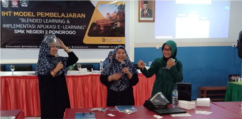 Sekolah yang dikomandani Farida Hanim Handayani, S.Pd., M.Pd tersebut mengundang UPT Bahasa UMPO untuk mengisi worshop IHT Model Pembelajaran Blended Learning & Implementasi Aplikasi E-Learning, pada tanggal 14 – 17 Juli 2020, dan diikuti oleh 80 guru SMK N 2 Ponorogo yang terbagi menjadi dua sesi untuk guru normatif dan produktif.